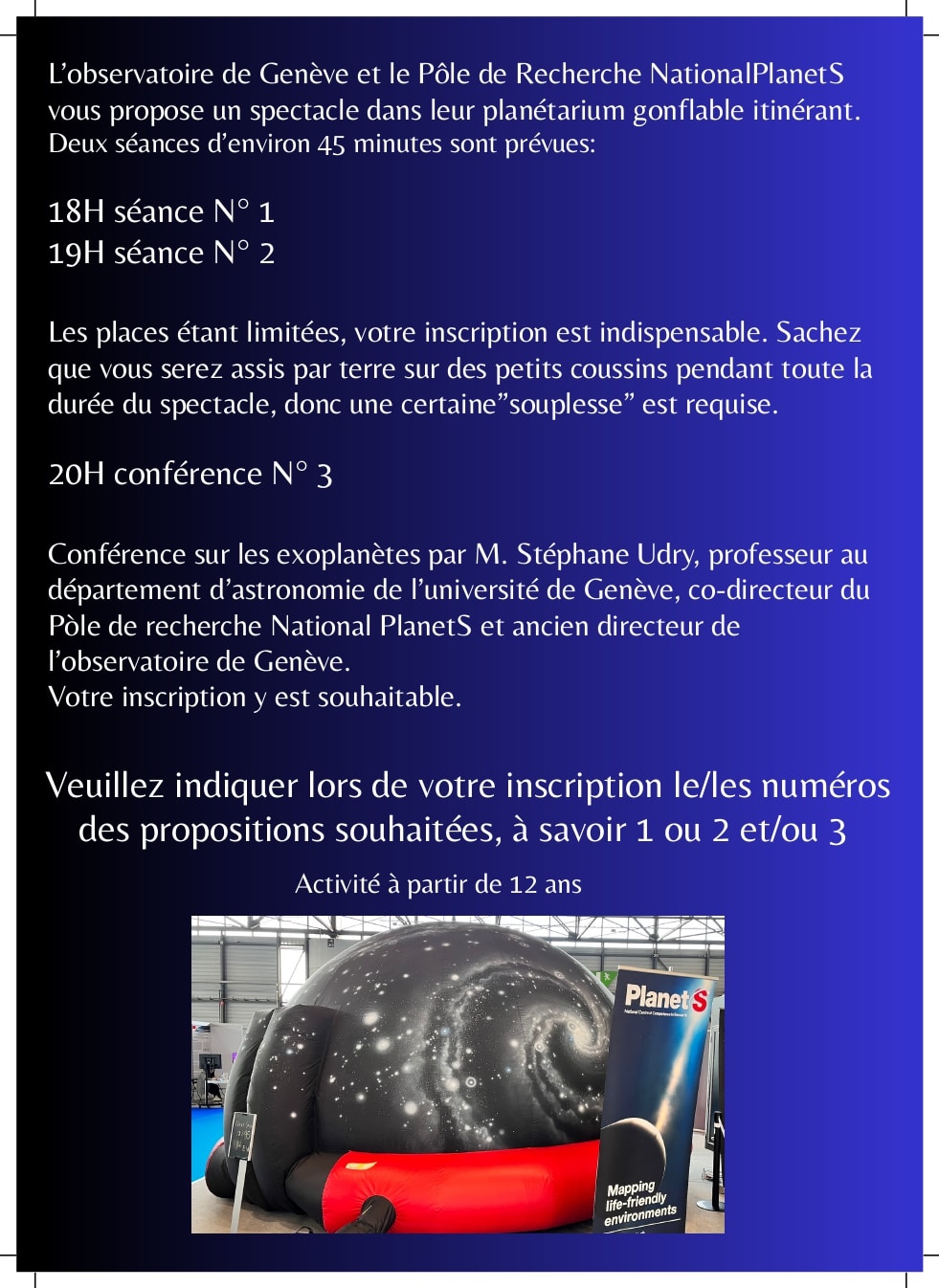 A noter que les deux séances Planétarium 1 et 2 sont compètes.