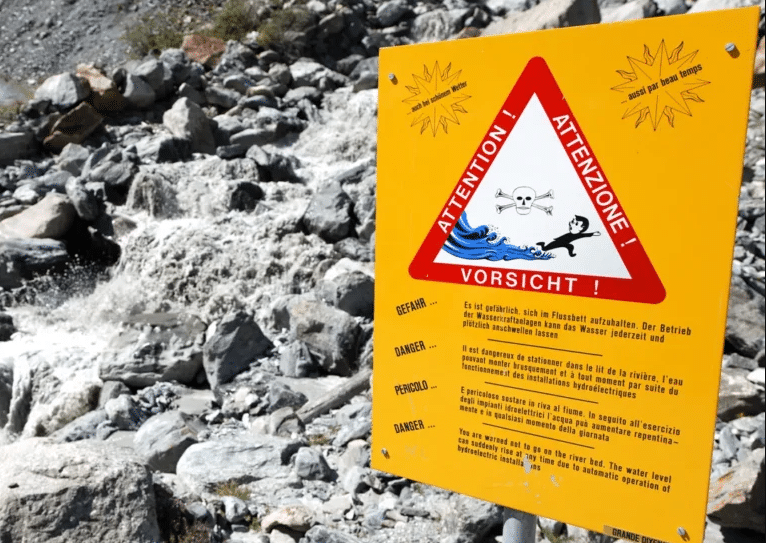 Les aménagements hydroélectriques peuvent soudainement relâcher de grandes masses d’eau liées à l’exploitation des installations ou à la suite d’orages. Ces lâchers d’eau peuvent survenir à chaque instant, de jour comme de nuit, et par n’importe quel temps. Ils ne sont pas toujours contrôlés par les hommes ; des systèmes automatiques intégrés les régulent. Raison pour laquelle les eaux peuvent monter très vite et ce, dans de nombreux endroits.