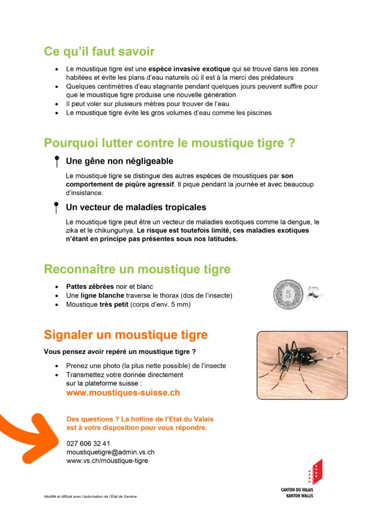 Des informations au sujet de ce moustique sont également disponibles sur la page Internet suivante : www.vs.ch/web/sfnp/moustique-tigre.